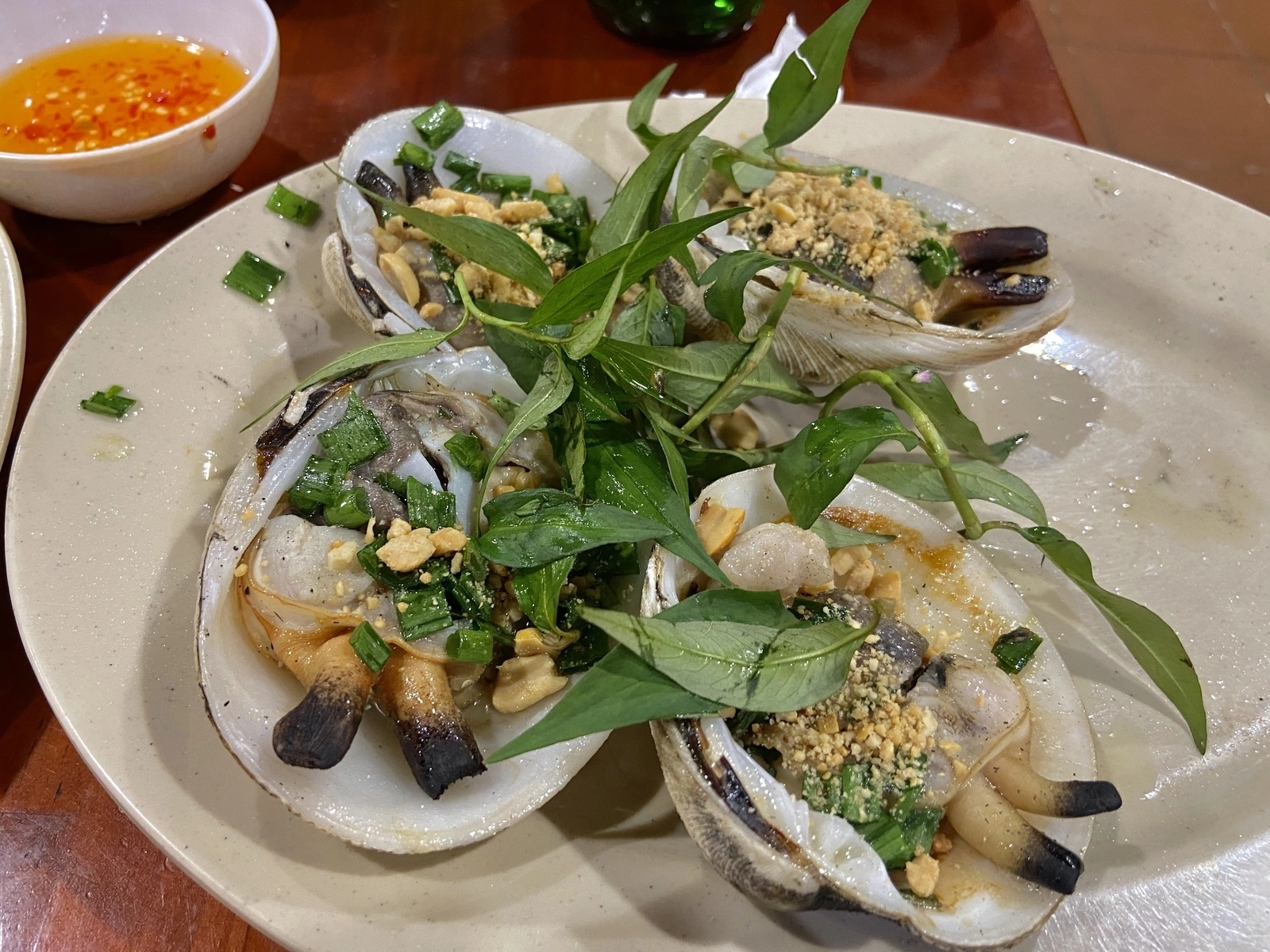 Còi biên mai nướng: Những người sành ăn thường rất thích món còi biên mai nướng muối ớt. Vị mặn của muối, vị cay của ớt và vị ngọt của còi biên mai trộn lẫn tạo nên một hương vị vô cùng đặc biệt. So với các món xào, luộc, còi biên mai nướng còn giữ được độ giòn, dai nên được người địa phương yêu thích hơn cả.
