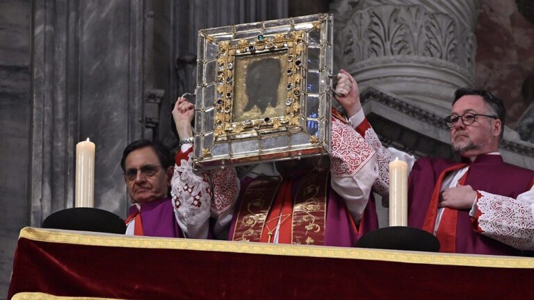 Chiều ngày 22/3/2026, Chúa Nhật thứ năm Mùa Chay, hàng ngàn tín hữu đã quy tụ tại Đền thờ Thánh Phêrô để tham dự nghi thức tôn kính “Khăn Thánh Veronica” – một trong những thánh tích lâu đời gắn liền với cuộc Thương Khó của Chúa Giêsu. Sự kiện nằm trong truyền thống hành … Đọc tiếp Chiêm ngắm “Khăn Thánh Veronica” tại Đền thờ Thánh Phêrô