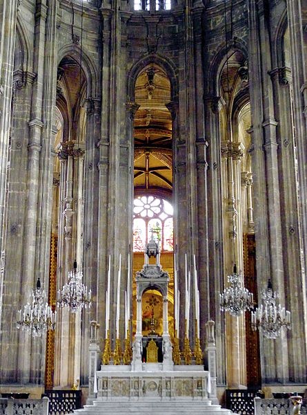 Ngôi thánh đường hiện nay được xây trên nền một nhà thờ còn xưa hơn, thi công kéo dài hơn 100 năm từ cuối thế kỷ 15 đến đầu thế kỷ 17, vì thế hội tụ nhiều phong cách kiến trúc: Gothic, Gothic Flamboyant và Phục Hưng.