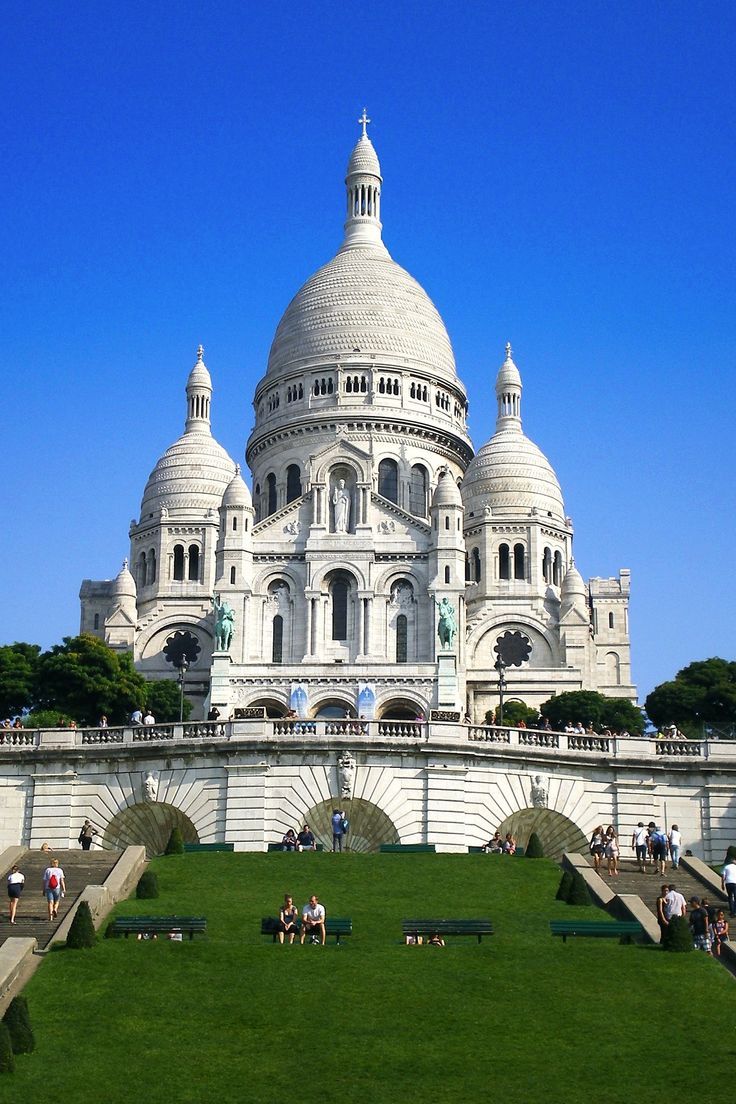 Vương cung thánh đường Sacré-Cœur (35 Rue du Chevalier de la Barre, Quận 18, Metro: Abbesses hoặc Anvers; đi funicular lên đồi; website) là một trong những biểu tượng dễ nhận diện nhất của Paris, nổi bật với mặt tiền đá vôi trắng trên đỉnh đồi Montmartre.