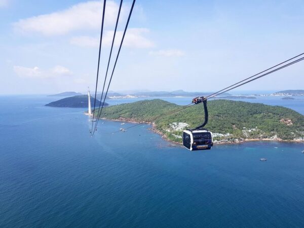 - Đoàn di chuyển tới Ga An Thới, ra Cáp treo Hòn Thơm: Chiều dài Cáp Treo Hon Thơm là 7.899,9m. Đây là chiều dài lớn nhất được xác lập về kỷ lục thế giới. Cáp treo Hòn Thơm sẽ đưa du khách đến với một hành trình du ngoạn kỳ thú trên cao, để thu vào tầm mắt 360 độ vẻ đẹp Nam Phú Quốc. Bước xuống cáp treo, du khách sẽ được thỏa sức tận hưởng bãi tắm cát trắng mịn, nước trong veo bên rừng già hoang sơ.