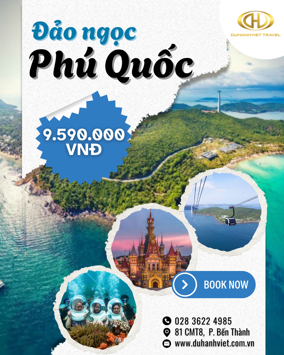 09:30 Đoàn khởi hành ra sân bay Phú Quốc làm thủ tục đáp chuyến bay lúc 12:45 về lại TP HCM. Kết thúc hành trình tham quan. HDV hẹn gặp lại Quý khách trong những chuyến hành trình tiếp theo.