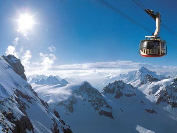 - Quý khách trải nghiệm cáp treo quay 360 độ trên không đầu tiên của thế giới, chinh phục đỉnh núi Titlis – Thiên đường du lịch của Thụy Sĩ. Quý khách chiêm ngưỡng phong cảnh tuyệt đẹp từ sông băng ở độ cao 3200m so mực nước biển. Đi cáp treo 45 phút vượt qua rặng núi hùng vĩ cao vút phủ trắng tuyết, quý khách sẽ được chiêm ngưỡng cảnh quan thiên nhiên hùng vĩ. Thung lũng xanh rì kéo dài đến tận chân trời, rừng thông đặc thù của vùng núi Alps, những con suối trong veo và những ghềnh thác, nước đổ ầm ầm và cả những dải băng tuyết trắng xóa bất tận.