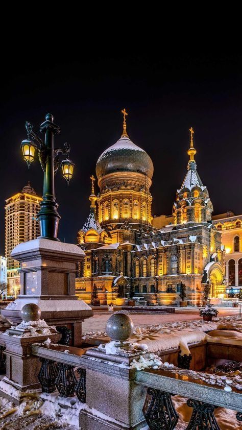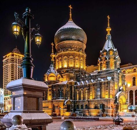 - Quảng Trường Nhà Thờ Saint Sophia Được thiết kế xây dựng từ năm 1907, với những viên gạch đỏ và mái vòm mang phong cách kiến trúc Byzantine, nhà thờ Saint Sophia được xem là một trong những biểu tượng của Cáp Nhĩ Tân, đồng thời là nhà thờ chính thống lớn nhất khu vực viễn đông. Qua thời gian, được khôi phục và tu sửa lại nhiều lần đã được chuyển thành Bảo tàng kiến trúc nghệ thuật Cáp Nhĩ Tân vào năm 1997. là nhà thờ mang phong cách kiến trúc Byzantine được bảo tồn chọn vẹn nhất Trung Quốc.