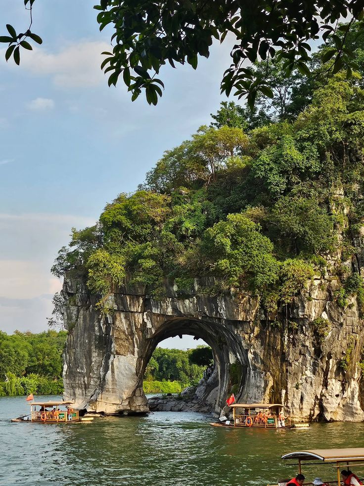 - “Núi Vòi Voi” Biểu tượng của thành phố Quế Lâm, nằm tại nơi hợp lưu của sông Li Giang và sông Đào Hoa. Núi có hình dáng giống như chú voi đang hút nước nên được đặt tên như vậy. Giữa vòi voi và chân voi là động Thủy Nguyệt rộng khoảng 150 m², nước sông chảy xuyên qua động. Bên trong còn lưu giữ hơn 50 bia khắc đá, là đơn vị bảo vệ di tích văn hóa trọng điểm.