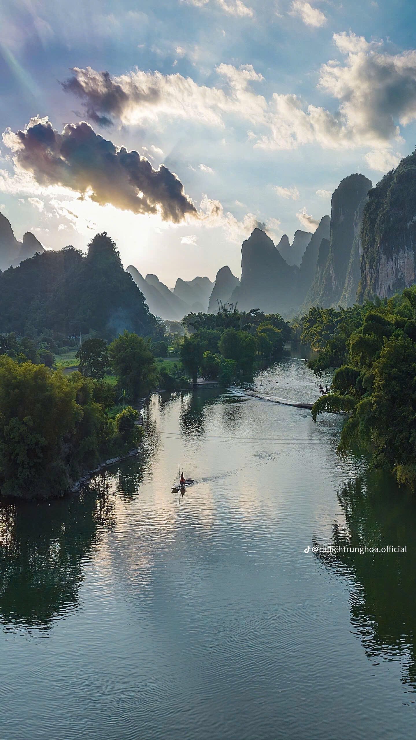 - “Trải Nghiệm Ngồi Bè Tre Tại Công Viên YuLong” Công viên Yulong được mệnh danh là “Tiểu Li Giang” quả không sai. Chỉ nghe tiếng mái chèo tre khẽ chạm mặt nước, trải nghiệm bè tre tại công viên Yulong, du khách xuôi dòng nước len lỏi giữa rừng núi đá. Hai bên bờ là hàng tre phượng vĩ lay động, cảnh đồng quê đẹp như tranh vẽ. Ngồi trên bè như lạc vào bức tranh thủy mặc đang chuyển động. Một trải nghiệm sơn thủy tĩnh lặng không thể bỏ qua khi đến Dương Sóc