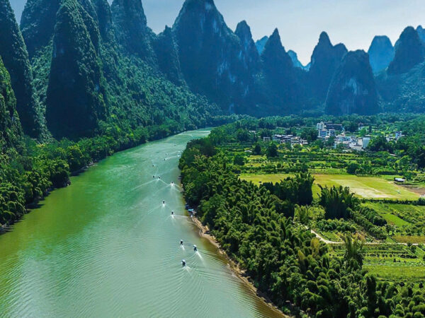 Quế Lâm nổi tiếng với cảnh quan sơn thủy độc đáo, nơi “thành phố nằm trong cảnh, cảnh hòa trong thành phố”.